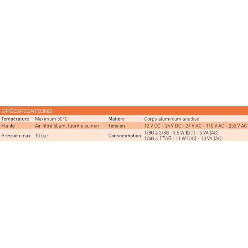 Elles sont disponibles en version 3/2 et 2/2 en normalement fermée et normalement ouverte. Plusieurs raccordements de 1/8G à 1'½G sont possibles. Le rappel ressort se fait mécaniquement.